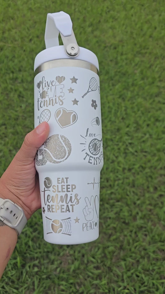 Personalized laser engraved Tennis, basketball, baseball, swimming or football insulated tumbler, coach insulated stainless steel tumbler cup