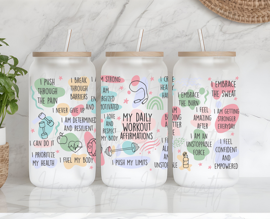 Personalized Workout daily affirmations insulated stainless steel tumbler, mug or Libbey glass can
