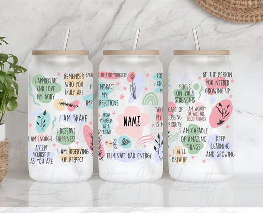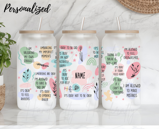 Personalized my mental breakdown cup, motivational affirmations Libbey glass can