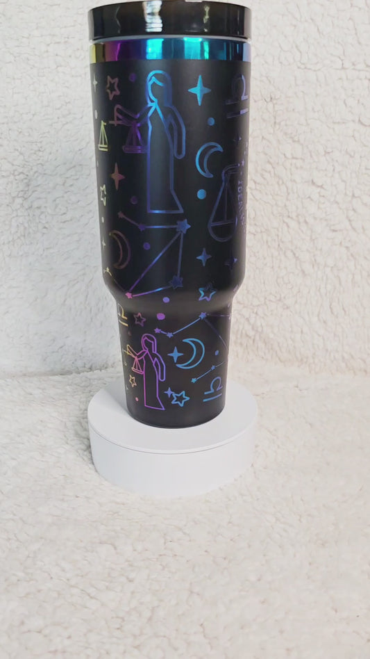 Personalized laser engraved horoscope stainless steel tumbler, custom zodiac insulated rainbow chroma tumbler cup, custom astrology gift