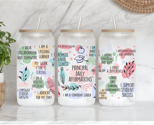 Personalized Principal daily ffirmations insulated stainless steel tumbler, mug or Libbey glass can