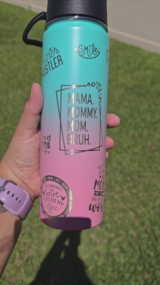 Personalized MOM, MAMA full wrap insulated flip straw stainless steel laser engraved water bottle, personalized mom cup, Mom travel tumbler