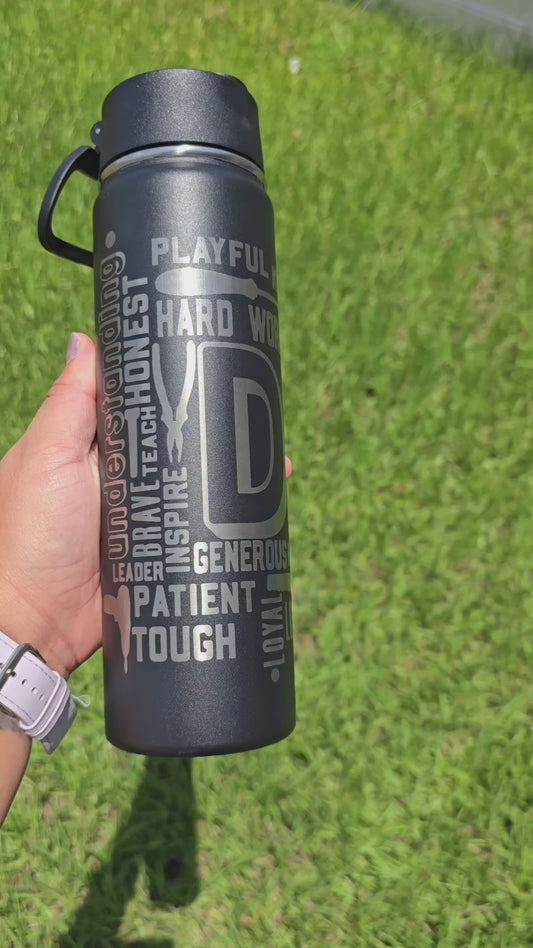 Customizable powder coated insulated flip straw water bottle with dad's appreciation words laser engraved