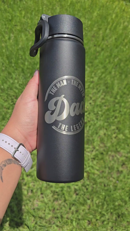 Customizable powder coated insulated flip straw water bottle with dad designs laser engraved