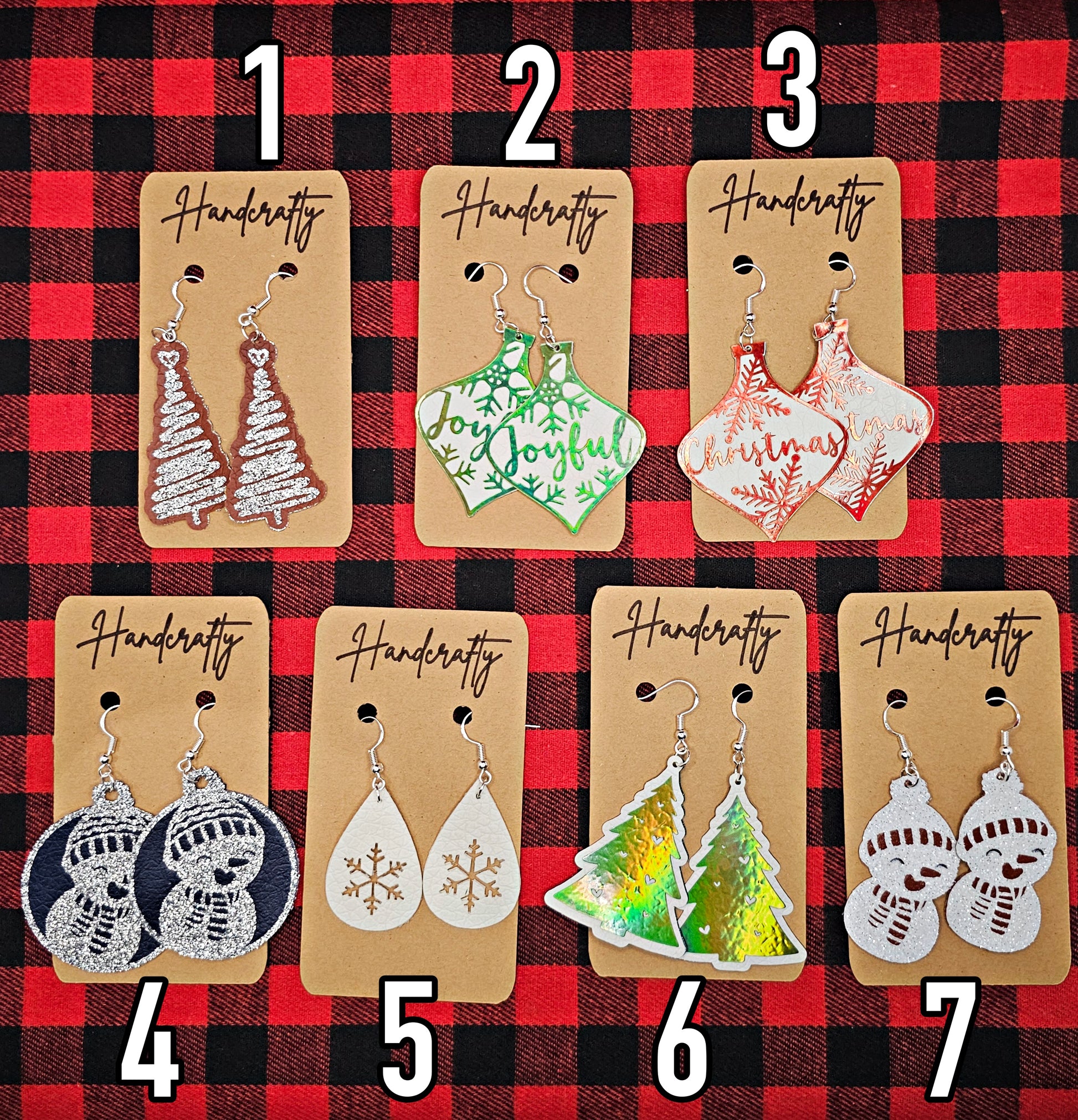 Get ready for Christmas with these beautiful and affordable handmade earrings. The earrings are made of faux leather, holographic heat transferred vinyl and or glitter vinyl. They are lightweight and the hook is made with sterling silver 925, so they are hypoallergenic. The earrings sizes ranges from 1.5 Inch to 2.2 inch in length to fit a wide range of faces sizes and shapes.