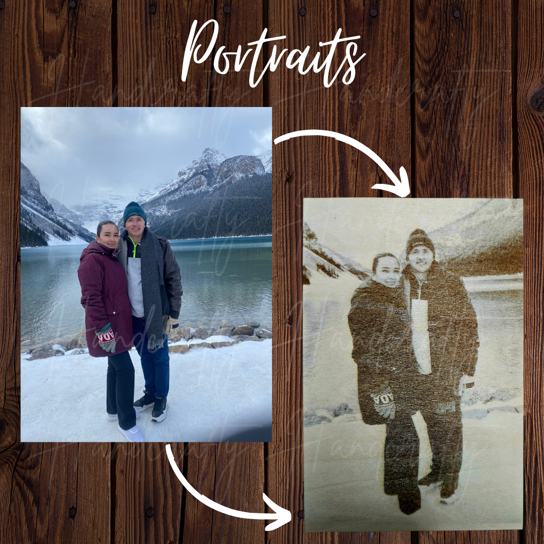 Introducing our exquisite Laser Engraved Photo on bass wood. They are a unique and timeless way to transform your cherished memories into stunning works of art. Elevate your home decor with these personalized wooden portraits that capture the essence of your special moments. We offer you different sizes for your needs. You can add a short text on the back of the keychain, or the souvenir and all portrait sizes come with it's corresponding easel. The best results come from high resolution pictures, where the faces look clear and have good contrast. The better the quality of the image, the better the portrait results.