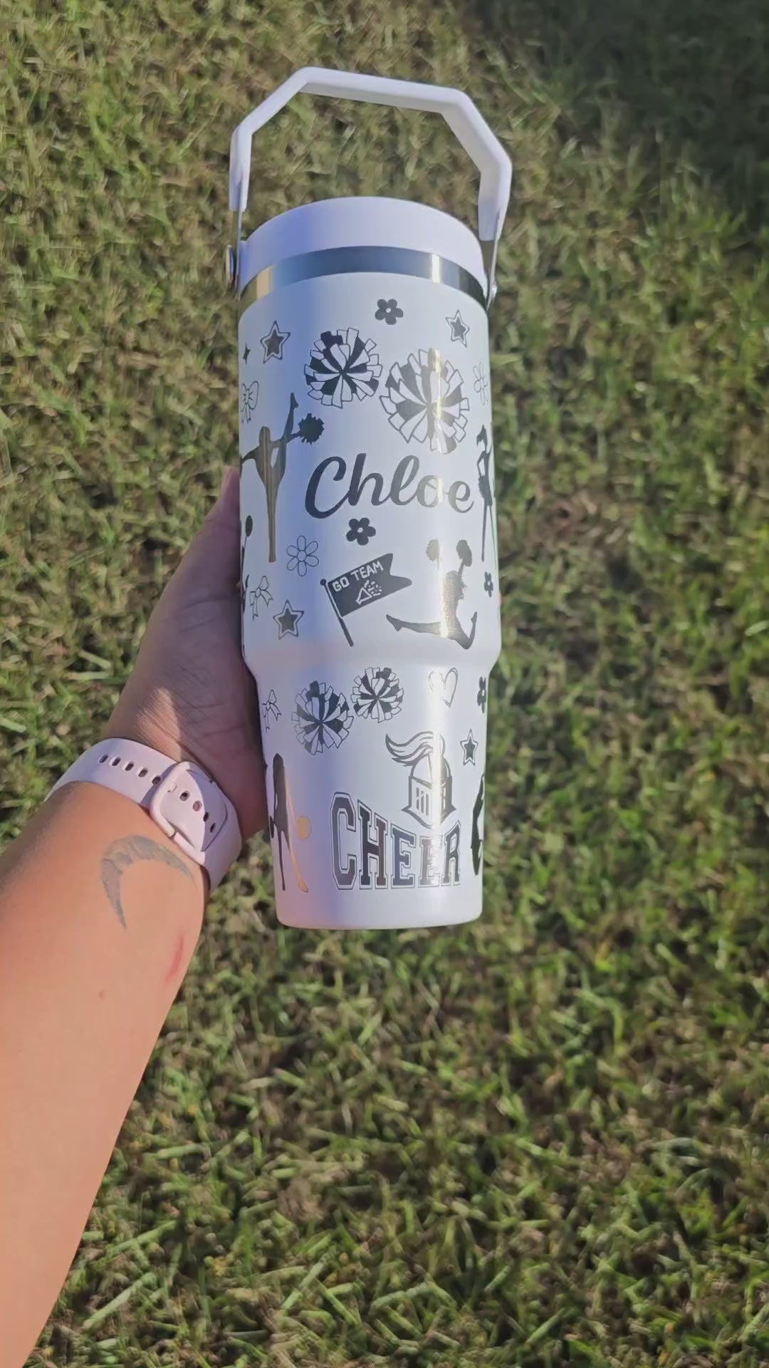 Personalized laser engraved cheer leader flip straw insulated tumbler, cheer coach insulated stainless steel tumbler cup, cheer team tumbler