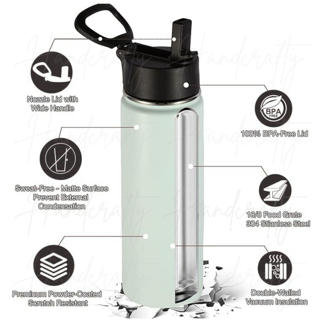 Featuring a Wicked inspired designs and Constructed from premium stainless steel, this tumbler boasts double-wall insulation, keeping beverages at the perfect temperature for hours on end. Whether it's piping a warm drink to kickstart the day or a refreshing iced beverage to keep cool under pressure, this bottle has you covered. The bottle can preserve the heat for approximately 12h and the cold for approximately 18h it has a flip straw lid and it's leak proof.